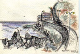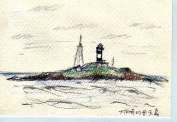 大間崎より弁天島(1993) 本州最北端。下北の大間崎から弁天島を描きました。 風が強かった。 大間の子供達と仲良くなって、ここまで連れてきてもらったんです。 |